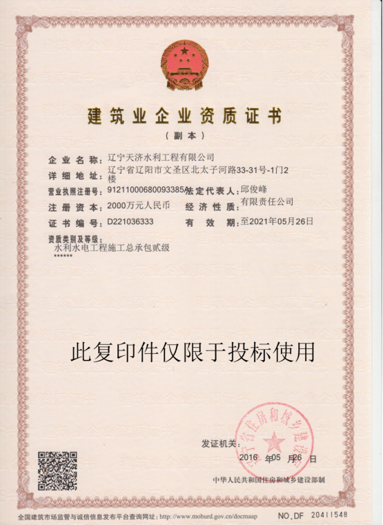 | 41 | 大伙房水库输水二期管道穿越太子河段应急防护工程 | 辽宁润中供水有限责任公司 | 6335804.00 | 2015-11-3 | 2016-5-3 |